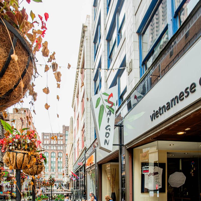 This is a fantastic Vietnamese Restaurant located right in the heart of the trendy E 4th St in Downtown Cleveland. The food is well prepared and nicely presented and tastes great too. The atmosphere is warm and inviting. The service is extremely friendly and welcoming. There are plenty of comfortable booths as well as long tables for large groups. This place is a GEM. I will return. We were delighted with our visit.