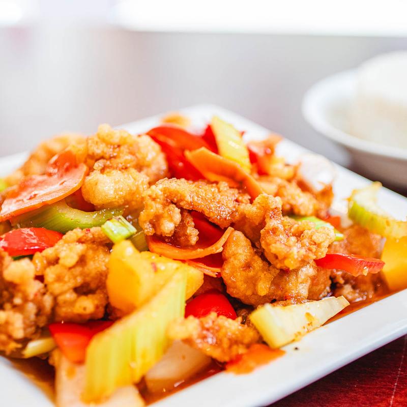 Món số t chua ngọt | Stir fried in sweet and sour sauce and garden vegetables • Chicken - $23.00 | Shrimp - $24.00 | Fried Tofu (V) - $20.00