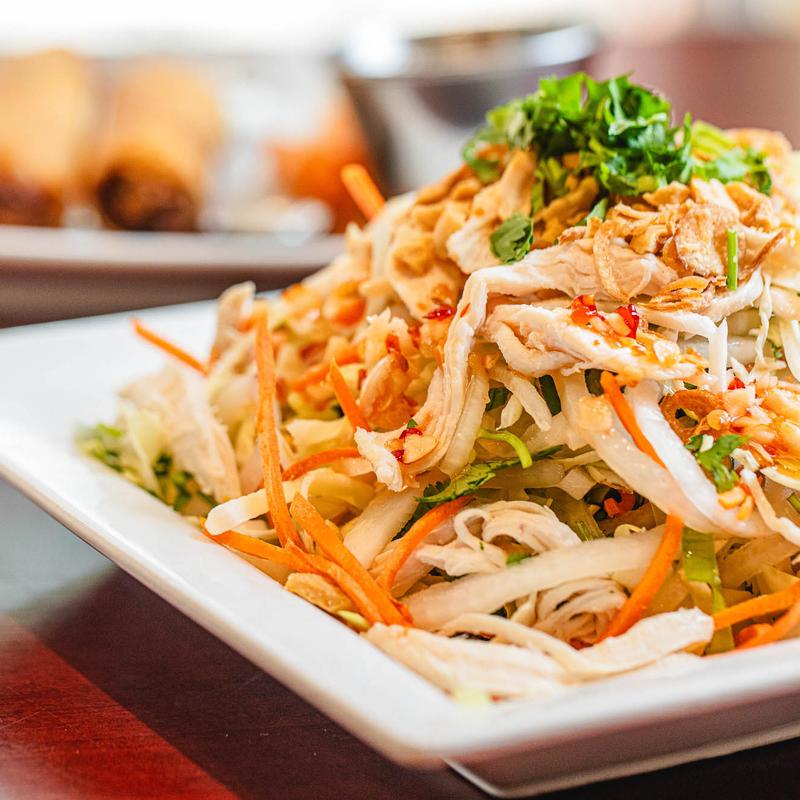 Gỏi | White cabbage tossed with onions, cilantro, scallions, crushed peanuts and house sweet vinaigrette • Chicken - $14.00 | Shrimp - $15.00 | Fried Tofu (V) - $14.00